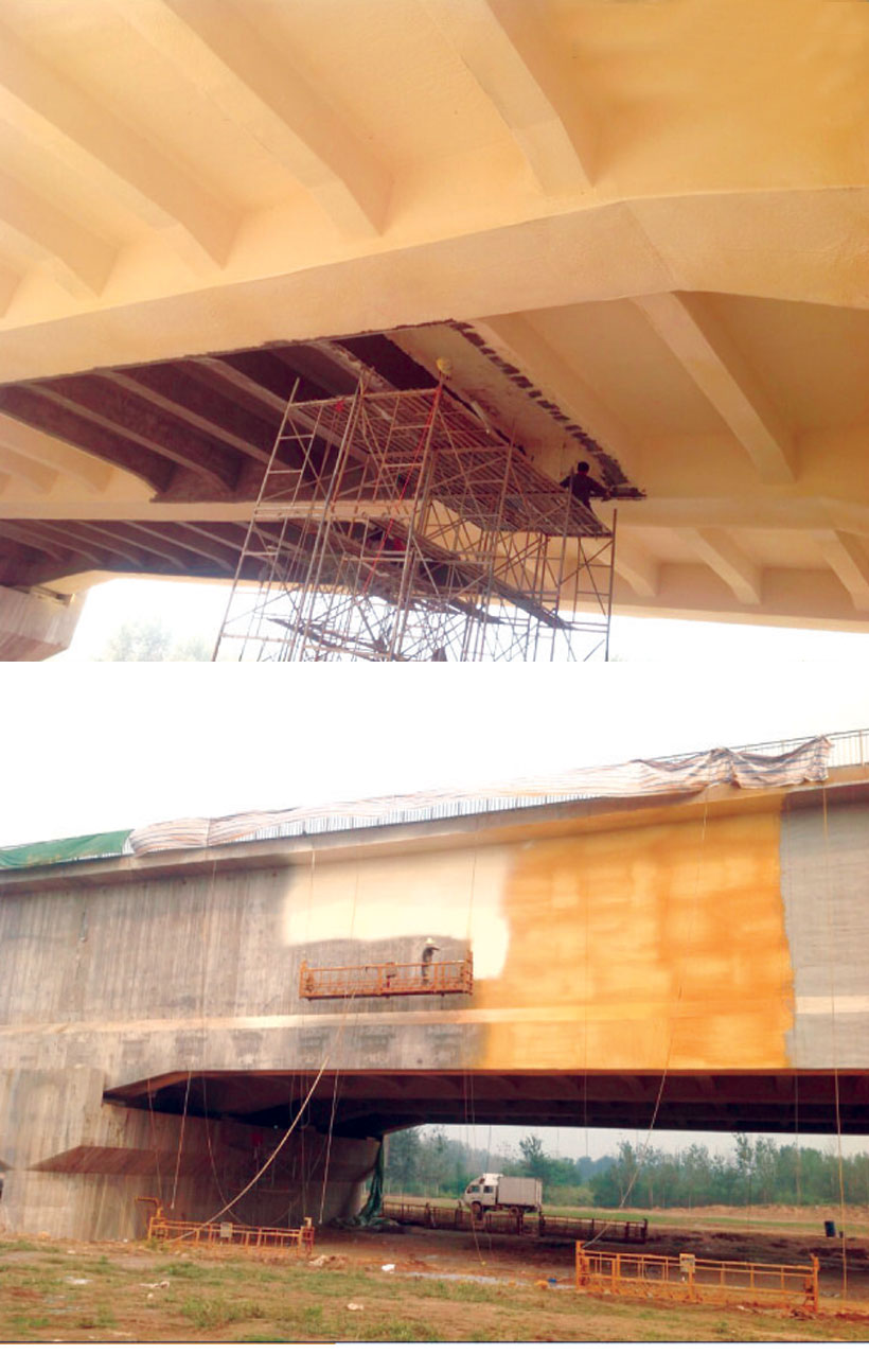 渡槽外圍護采用聚氨酯噴涂發(fā)泡體系,傳統(tǒng)的保溫板粘貼方法采用的是粘、錨結(jié)合,錨固件的安裝會對渡槽有所損傷,保溫效果難以到達整體密閉性,聚氨酯本身的粘接力和柔韌性非常適合此類建筑。