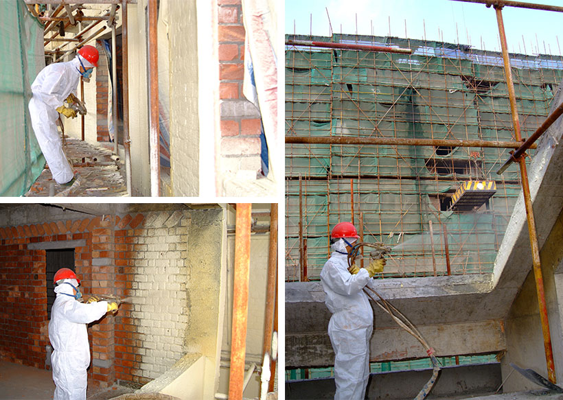 噴涂硬泡聚氨酯外墻外保溫系統(tǒng)采用現(xiàn)場(chǎng)機(jī)械化噴涂作業(yè)施工,施工速度快、效率高。聚氨酯施工對(duì)建筑物外形適應(yīng)能力強(qiáng),尤其適應(yīng)建筑物構(gòu)造節(jié)點(diǎn)復(fù)雜的部位的保溫如:外挑構(gòu)件、閣樓窗等。使用聚氨酯防潮底漆對(duì)基層墻面進(jìn)行處理,提高了聚氨酯保溫層的閉孔率,均化了保溫層與墻體的粘結(jié)力;使用聚氨酯界面砂漿對(duì)聚氨酯面層進(jìn)行處理,提高了聚氨酯與找平材料的粘結(jié)效果;使用膠粉聚苯顆粒漿料對(duì)聚氨酯保溫層進(jìn)行找平處理,提高了系統(tǒng)的保溫、透汽、抗裂、防火性能。外飾面采用面磚飾面,抗震性能好。